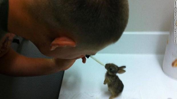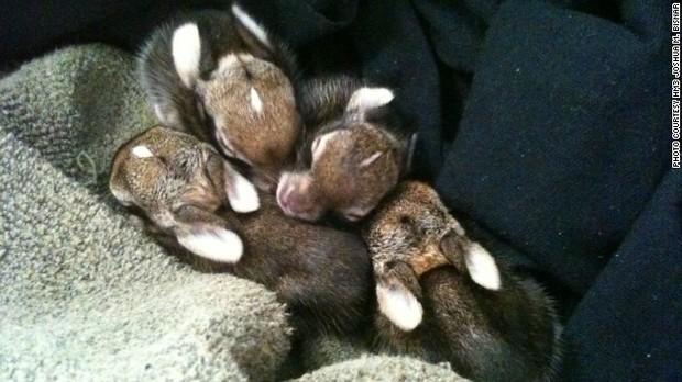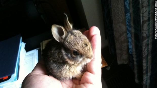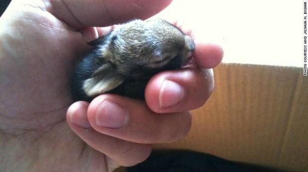 生後間もないウサギの赤ちゃん4匹を保護した男性が、手のひらに乗るくらい小さなウサギを育てる様子を