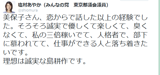 塩村あやか(みんなの党 東京都議会議員) @shiomura