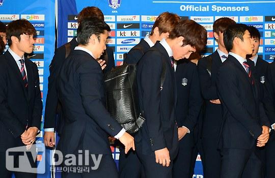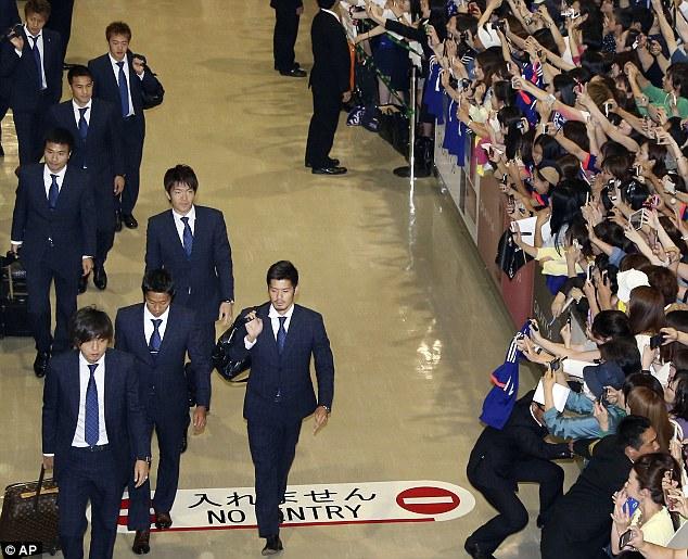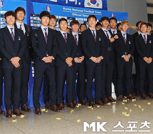 空港でファンからアメ玉を投げつけられ暗い表情の選手達