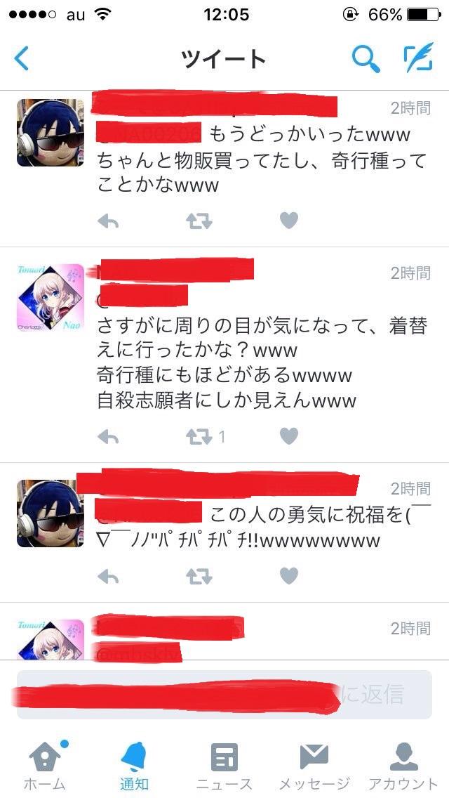 「ぼこられるww」「奇行種」「自殺志願者」と言われTwitterに晒される