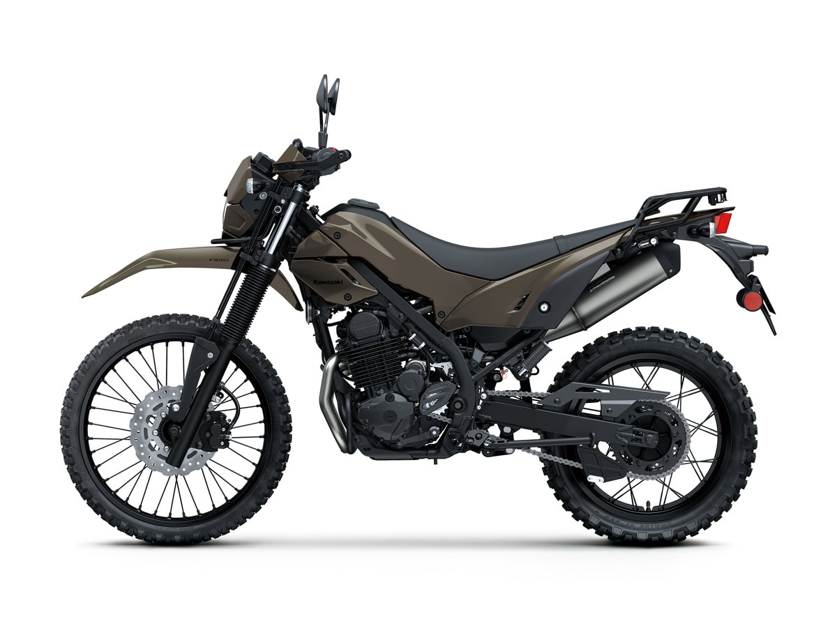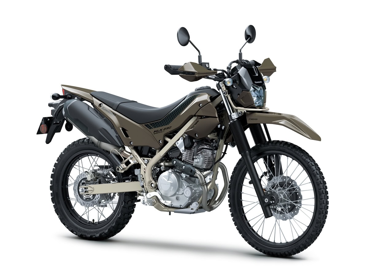 【カワサキの新型バイク】アウトドアギアを思わせるデザインもいい!足つき性を向上の「KLX230 SHERPA S」と無骨な「KLX230 DF」が新登場の画像一覧