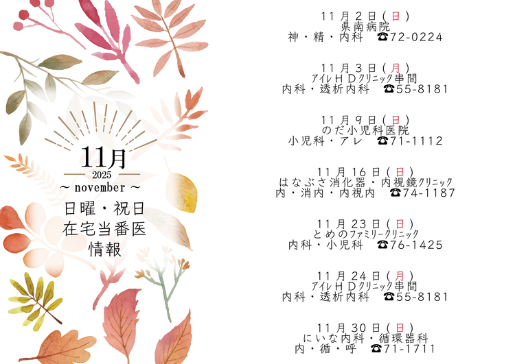 受診する前に、医療機関もしくはテレフォンサービス(TEL:0987-23-9999)で必ずご確認されるか、南那珂医師会のホームページ をご覧ください。