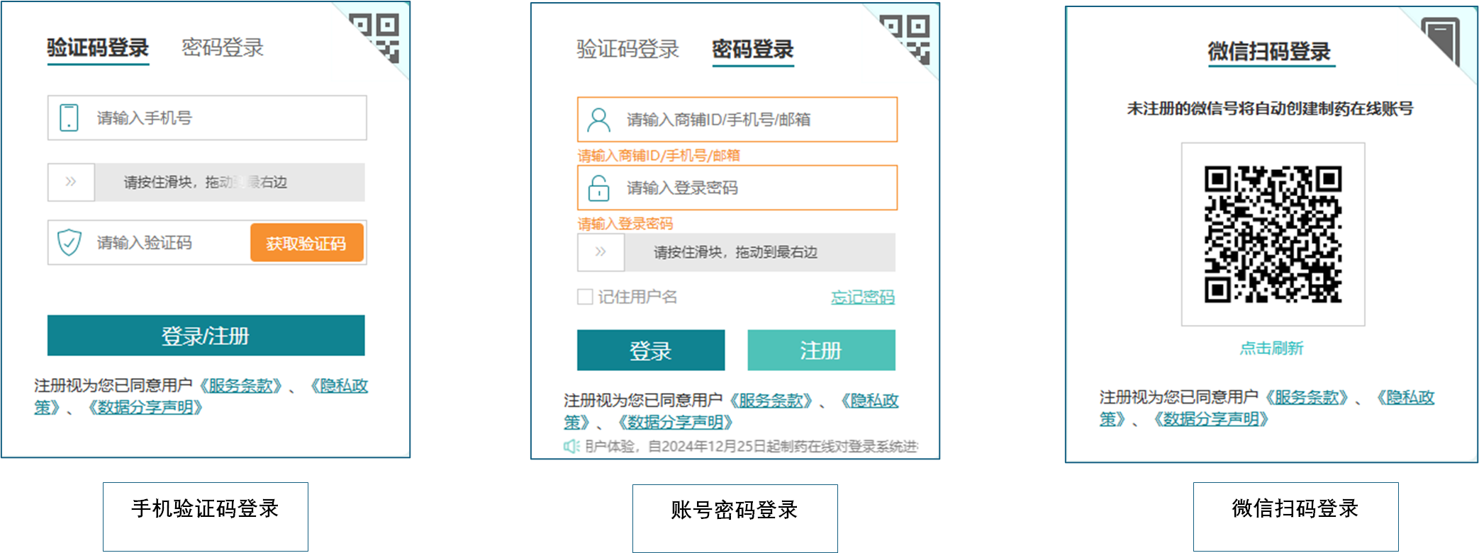 方式2:商铺ID/手机号/邮箱+密码登录;