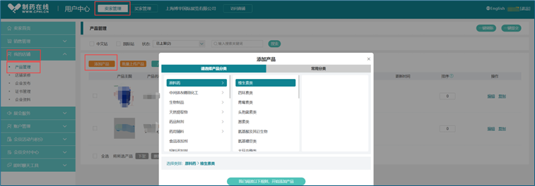 点击"卖家管理--我的店铺--产品管理"上传产品,选择"添加产品"逐个上传产品。批量产品上传请联系专属客服(见最下方)。