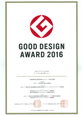 [画像:GOOD DESIGNAWARD 2016 グッドデザイン賞の表彰状]