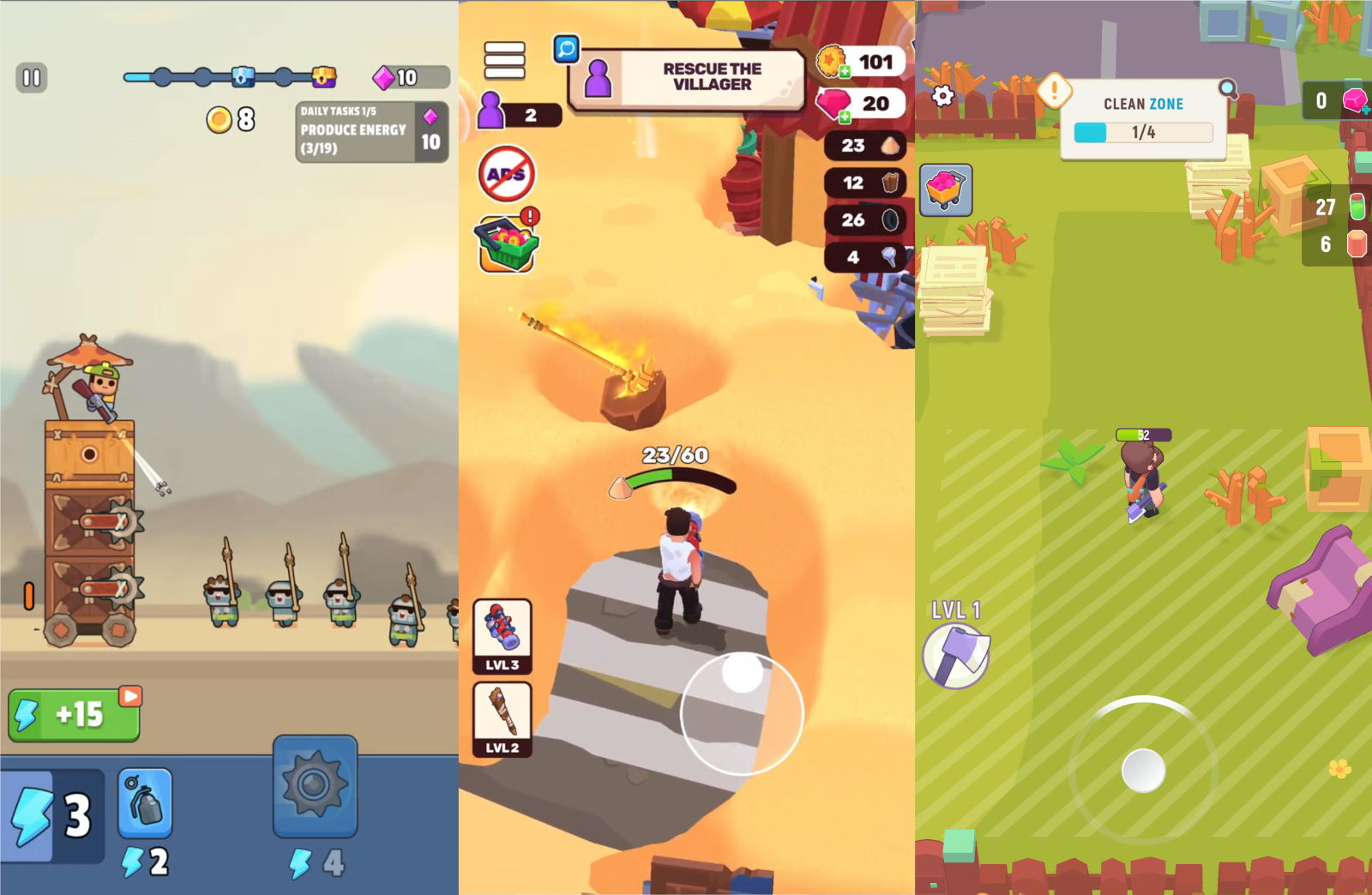 In the hybrid-casual genre, the main challenge is to create a smooth user experience which allows to build a long LTV. To achieve this, you need to implement ads and in-app purchases in ways that feel natural and don’t disrupt the gameplay flow. Let’s take a look at how we did this in Tower War.