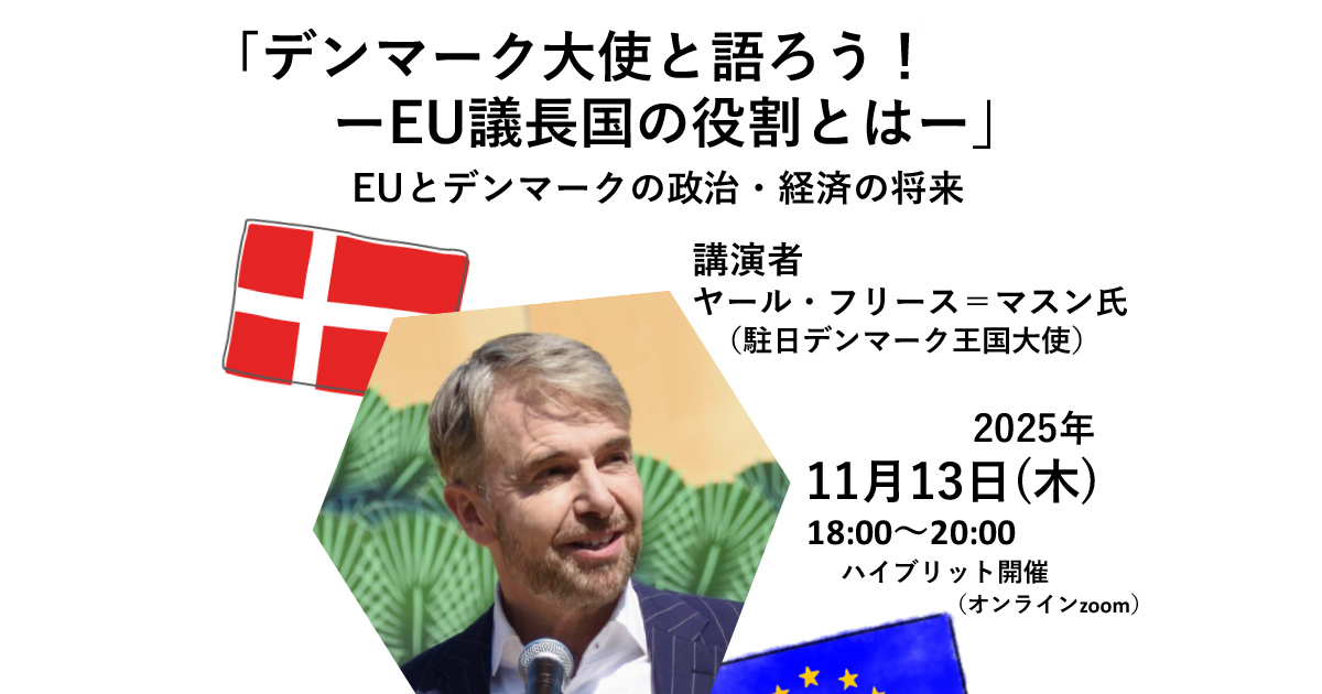 デンマークは2025年7月から12月にかけてEU議長国を務め、ウクライナやパレスチナにおける緊迫した政情下での外交に注目を集めています。また高い水準の福祉制度と優れた経済パフォーマンスからイノベーティブな福祉国家としての地位を確立しています。この度、駐日デンマーク王国大使を務めるヤール・フリース=マスン(Jarl Frijs-Madsen)氏を招いた講演と、講演後に大使と学生による語らいの時間を設けることでEU、そしてデンマークについて理解を深める機会とします。